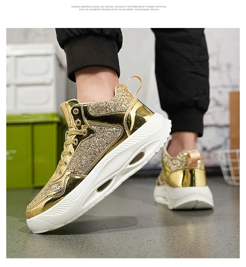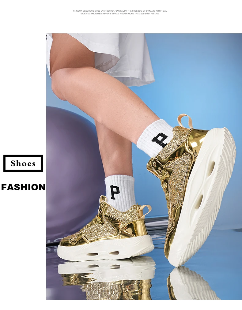 Luxury Women Sport Running Shoes Gold Mens Athletic Training Walking Sneakers Comfortable Light Couple Daily Sports Shoes
